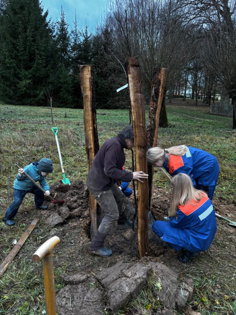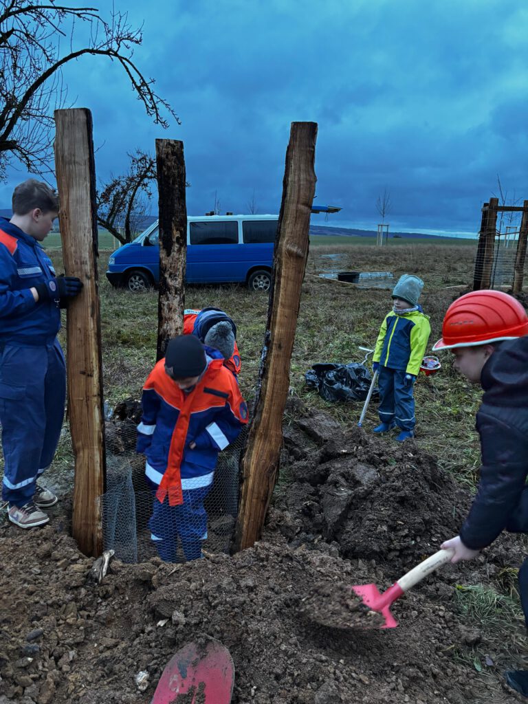 Unterstützung beim Pflanzen erhielten die Mitarbeiter der Stadt um den Baumwart Herr Schubert durch Mitglieder der Kinder- und Jugendfeuerwehr Neukirchen. Getreu dem Motto „Viele Hände, schnelles Ende“ packten alle Anwesenden motiviert mit an und konnten dabei auch noch einiges über die Pflanzung und Pflege von Obstbäumen lernen.