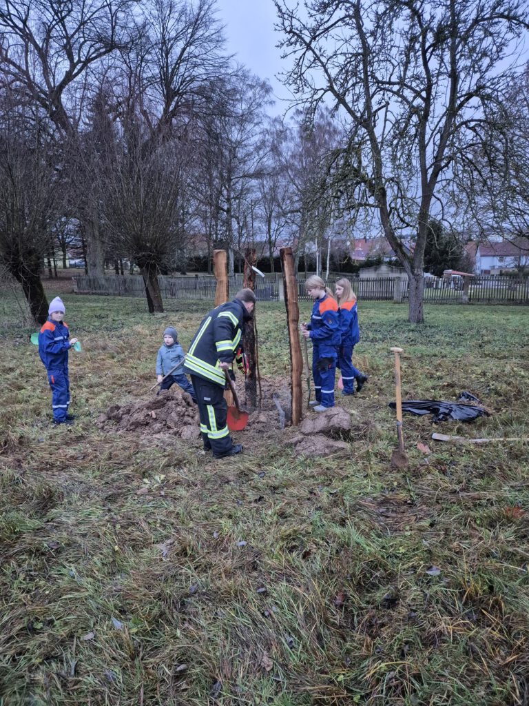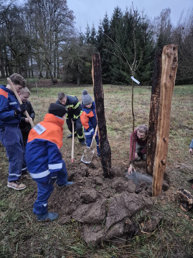 Der Feuerwehrverein Neukirchen e.V. hat Spendengelder, die aus der Auflösung des Drösseltalvereins stammen, genutzt, um in Absprache mit der Stadt Eisenach mehrere neue Bäume auf der Streuobstwiese hinter dem Friedhof zu pflanzen. Tatkräftige Unterstützung erhielten sie hierbei von den Kameradinnen und Kameraden der Jugendfeuerwehr.