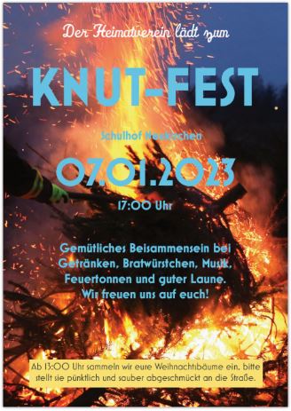 Nachdem die Veranstaltung in den letzten beiden Jahren corona-bedingt ausfallen musste, lädt der Heimatverein am 7. Januar 2023 wieder zum Knut-Fest ein.
