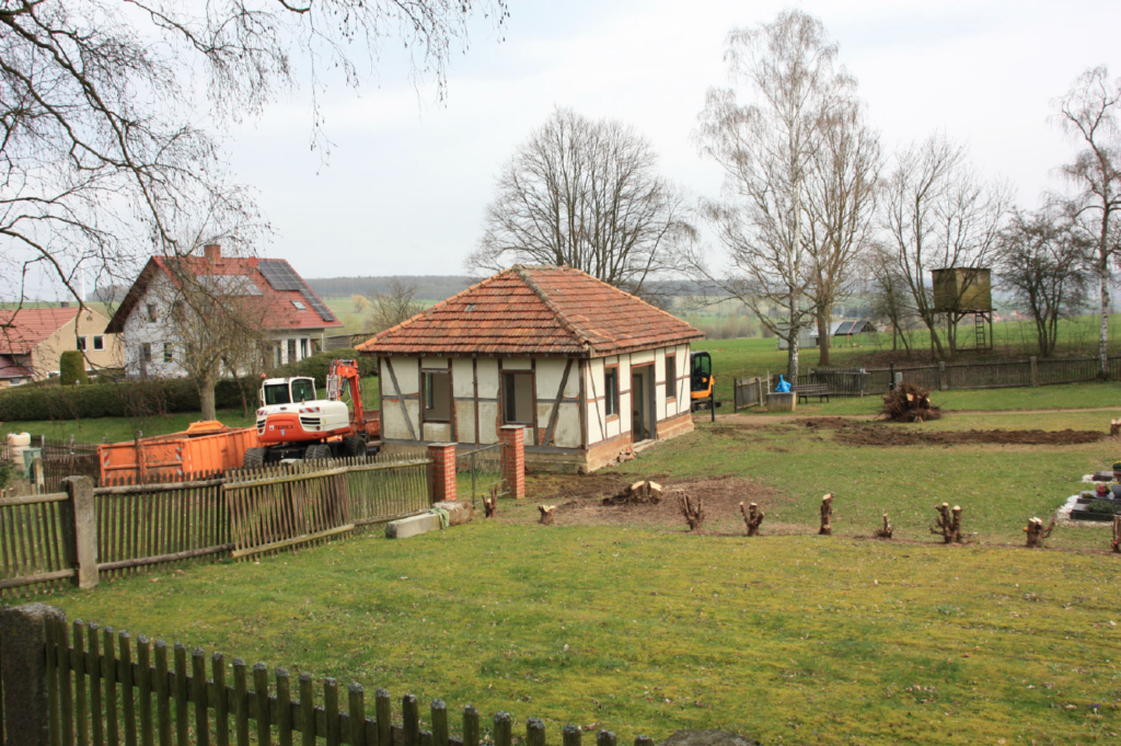 Im Zuge umfassender Umgestaltungsmaßnahmen auf dem Neukirchner Friedhof wurde am Samstag, den 23. März die alte Leichenhalle abgerissen. Das kleine Gebäude wurde in den letzten Jahrzehnten nicht mehr genutzt, stand leer und war marode.