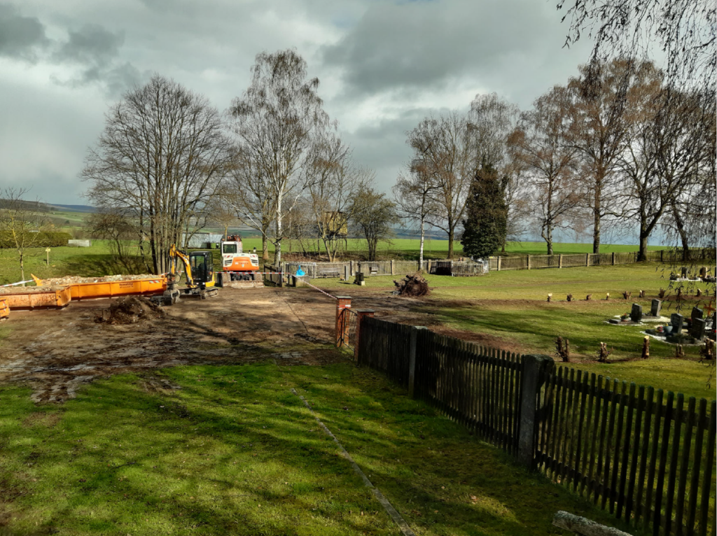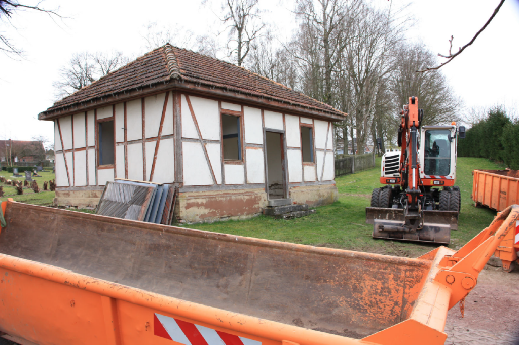 Die Reste der maroden Leichenhalle konnten in insgesamt vier Container geladen werden. Weitere Arbeiten am Friedhof sowie auf dem Stöckhof sind für die Zukunft geplant.